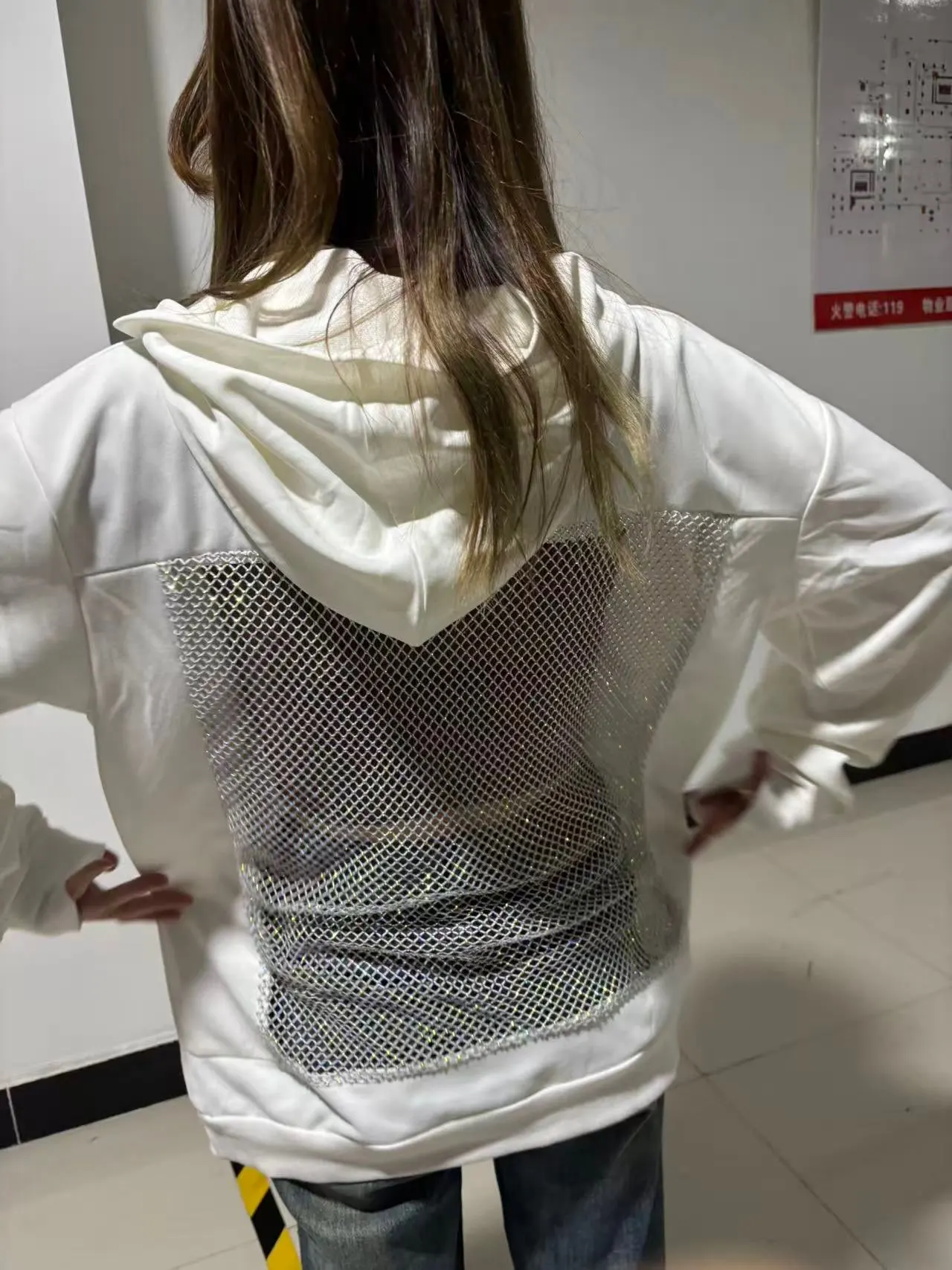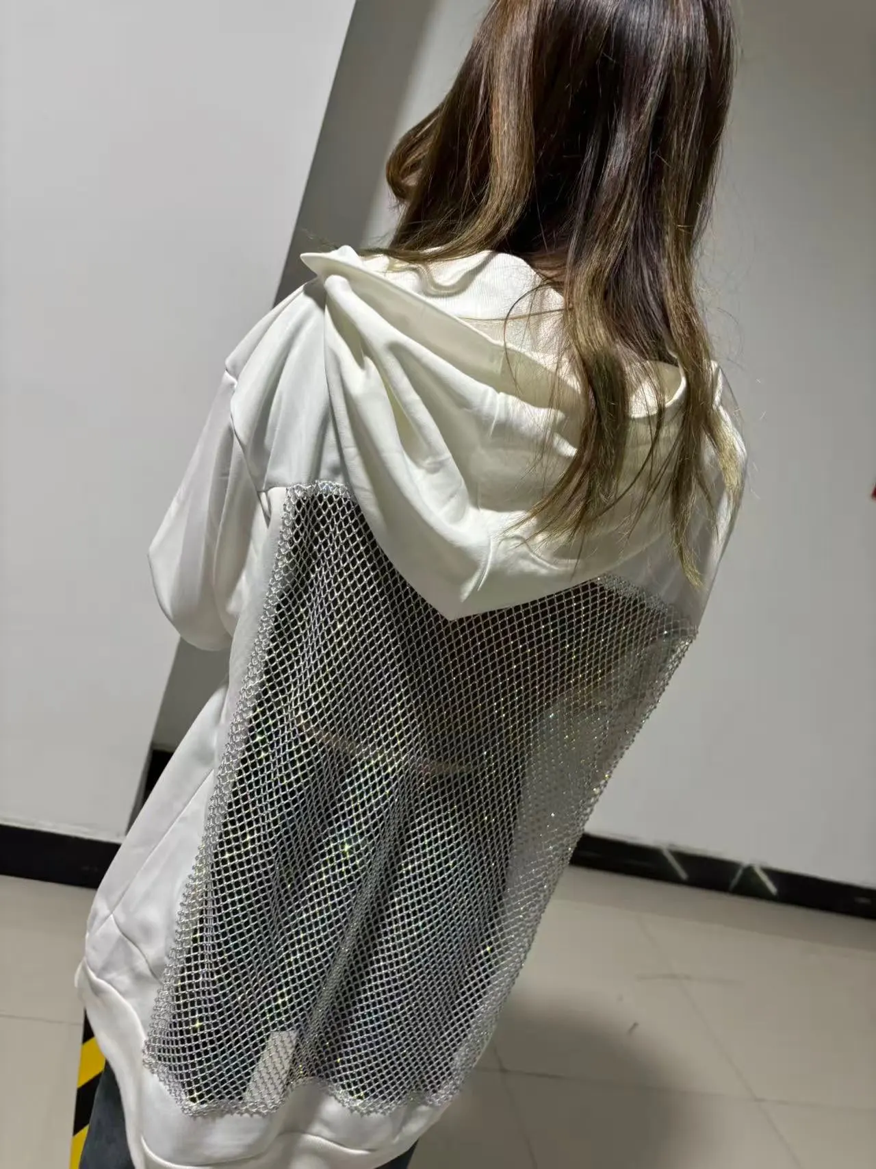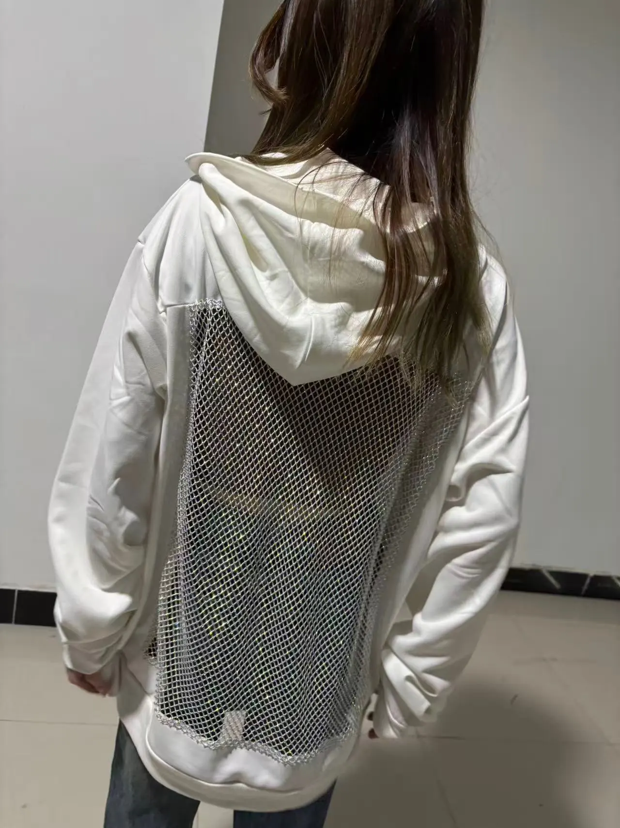 Omg this hoodie is fire! The back mesh with rhinestones catches every light, perfect for clubbing. Super soft inside, fits true to size.